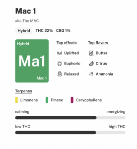 also known as “The MAC,” is a hybrid marijuana strain that crosses Alien Cookies F2 with Miracle 15. Mac 1 is a popular strain that consumers turn to for upbeat and balancing effects. But Mac 1 is special because not just anyone can grow it. In fact, growers of Mac 1 (Capulator’s Cut) have been carefully selected by the breeder in order to protect the quality of this versitile flower. Mac 1 is an instagram worthy strain, with eye-poppingly gorgeous buds that are nearly white and drenched in milky trichomes. Mac 1 comes through with a smooth, creamy, and funky terpene profile you can enjoy day and night.